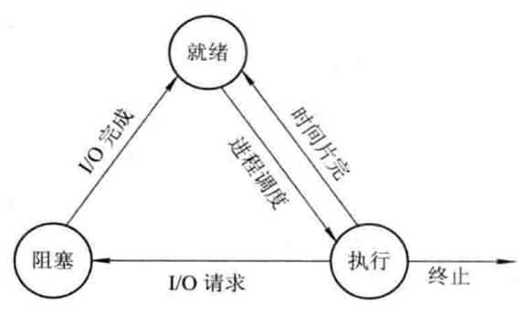 - 进程3种基本状态间的转换