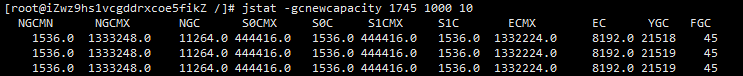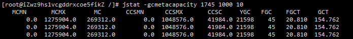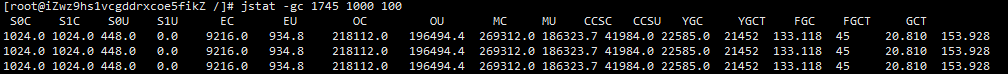 jstat -gccapacity pid:统计jvm各代容量和空间占用大小