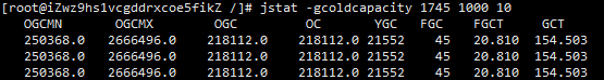 jstat -gcoldcapacity:老年代对象的信息及占用比例