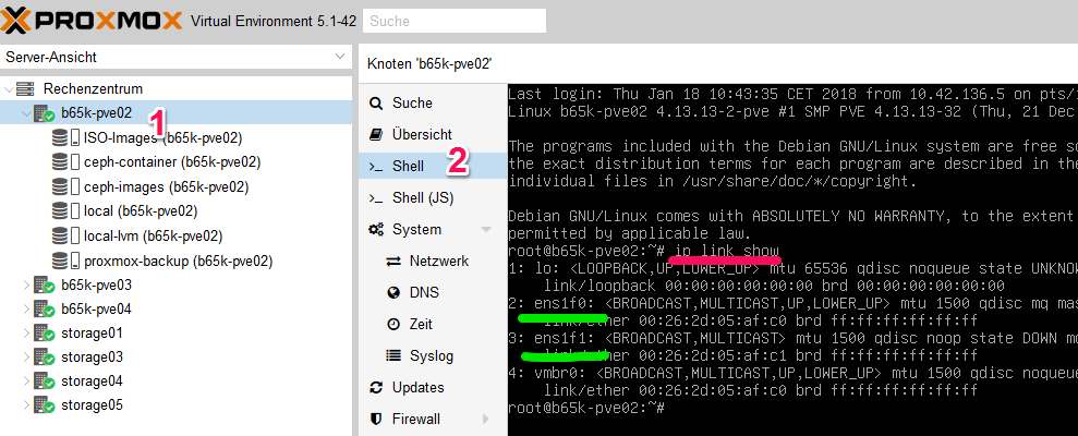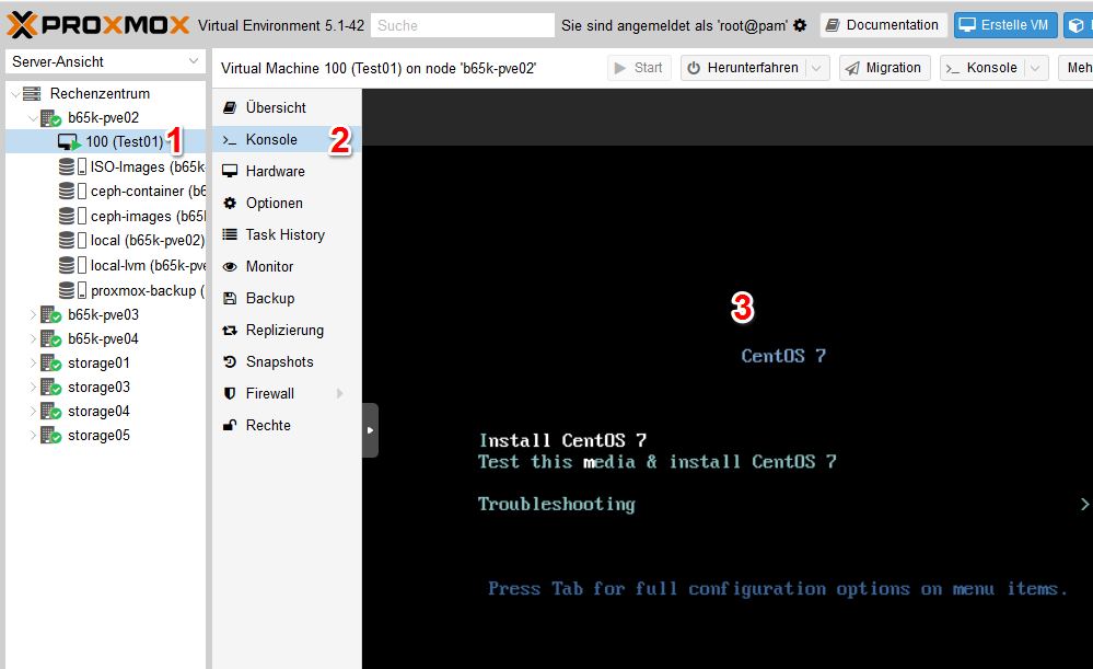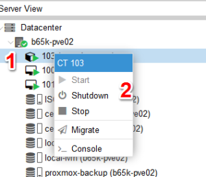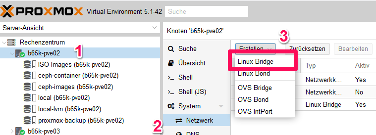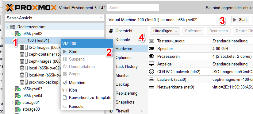 要在Proxmox中更改元素(主机,来宾或群集),请首先单击要更改或查看的元素(2)。然后在元素的菜单栏中编辑设置(4)。