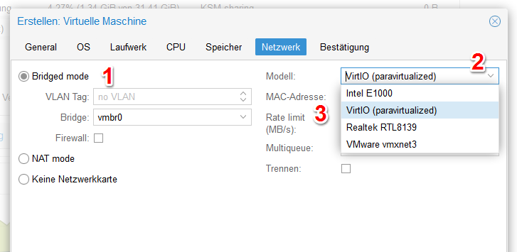 内部LAN端口的标准接口称为“ vmbr0”。外部接口应命名为“ vmbr1”。