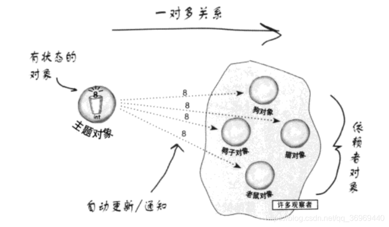 在对象之间定义一个一对多的依赖,当一个对象状态改变的时候,所有依赖的对象都会自动收到通知。