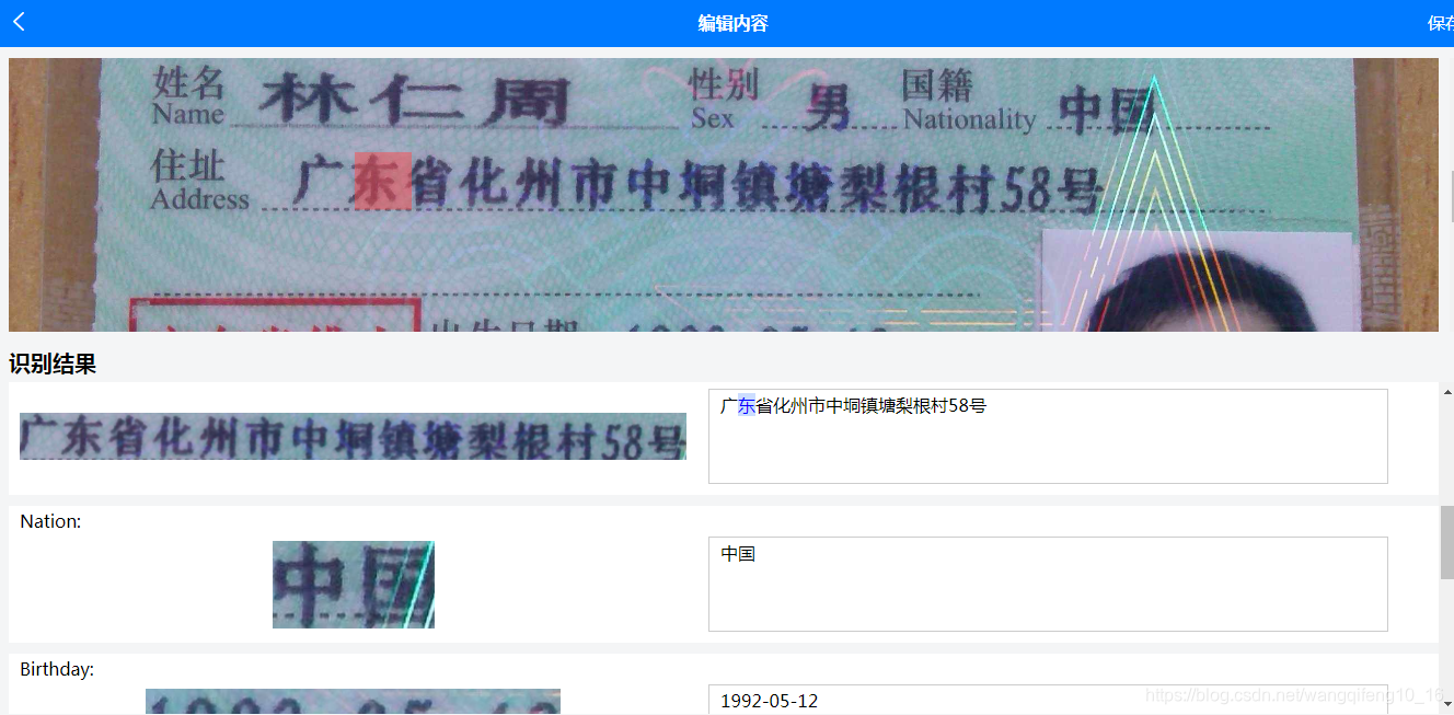 界面左侧显示每个栏目的切图,点击每个字,能够在原图中标记出来,识别结果与原图一目了然,可以快速发现是否识别错进行纠错,大大节省了人工校正的时间,可以试用户的人工纠错成本大大降低。