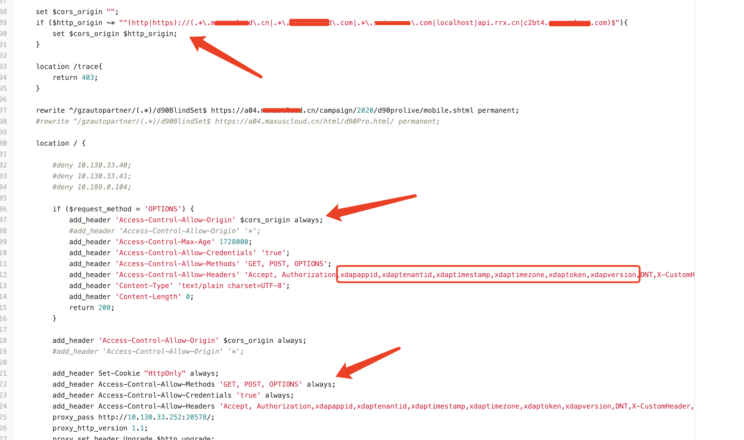 add_header 'Access-Control-Allow-Headers' 'Accept, Authorization,xdapappid,xdaptenantid,xdaptimestamp,xdaptimezone,xdaptoken,xdapversion,