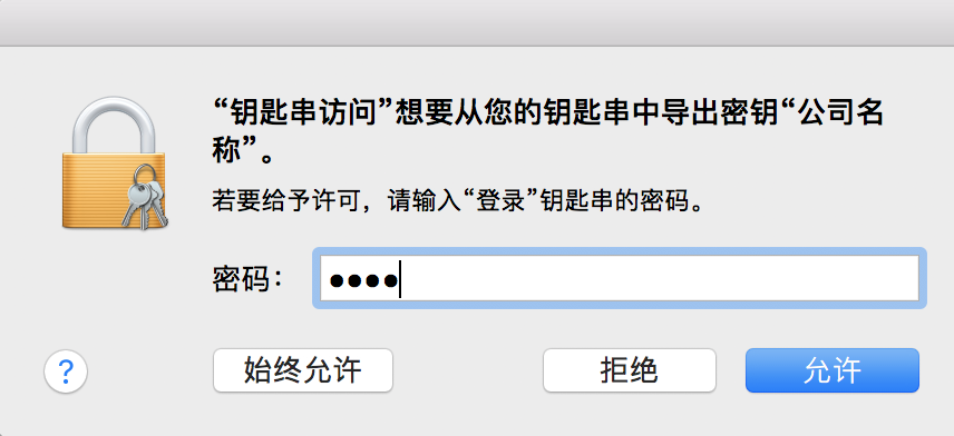 如果出现以下图片需要输入电脑开机密码。选择始终允许,在桌面上就形成了一个.p12文件了: