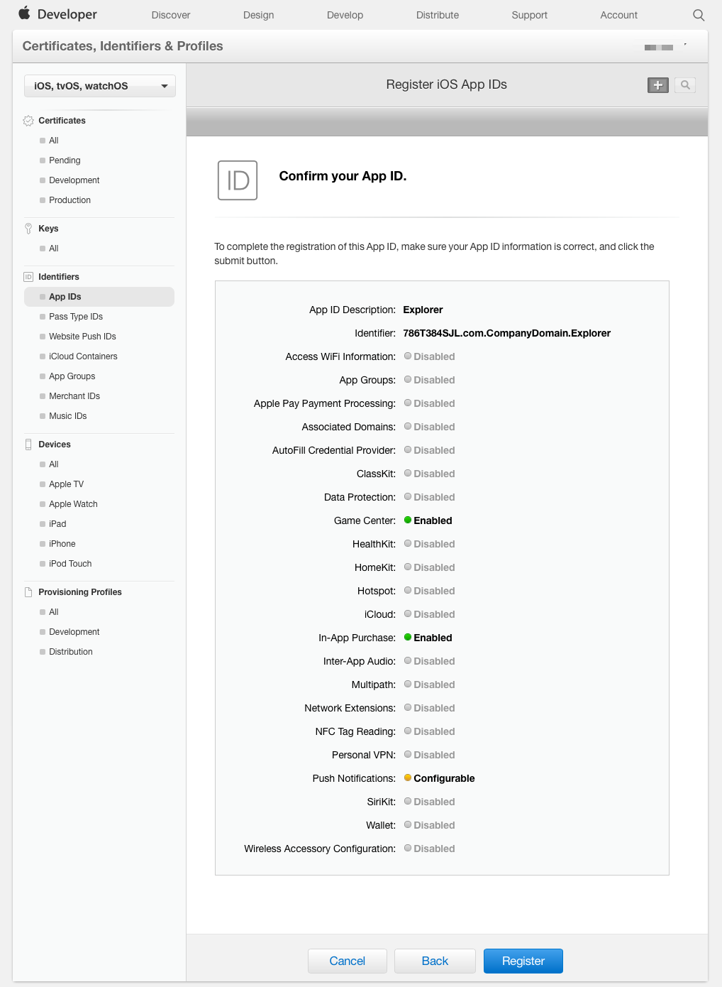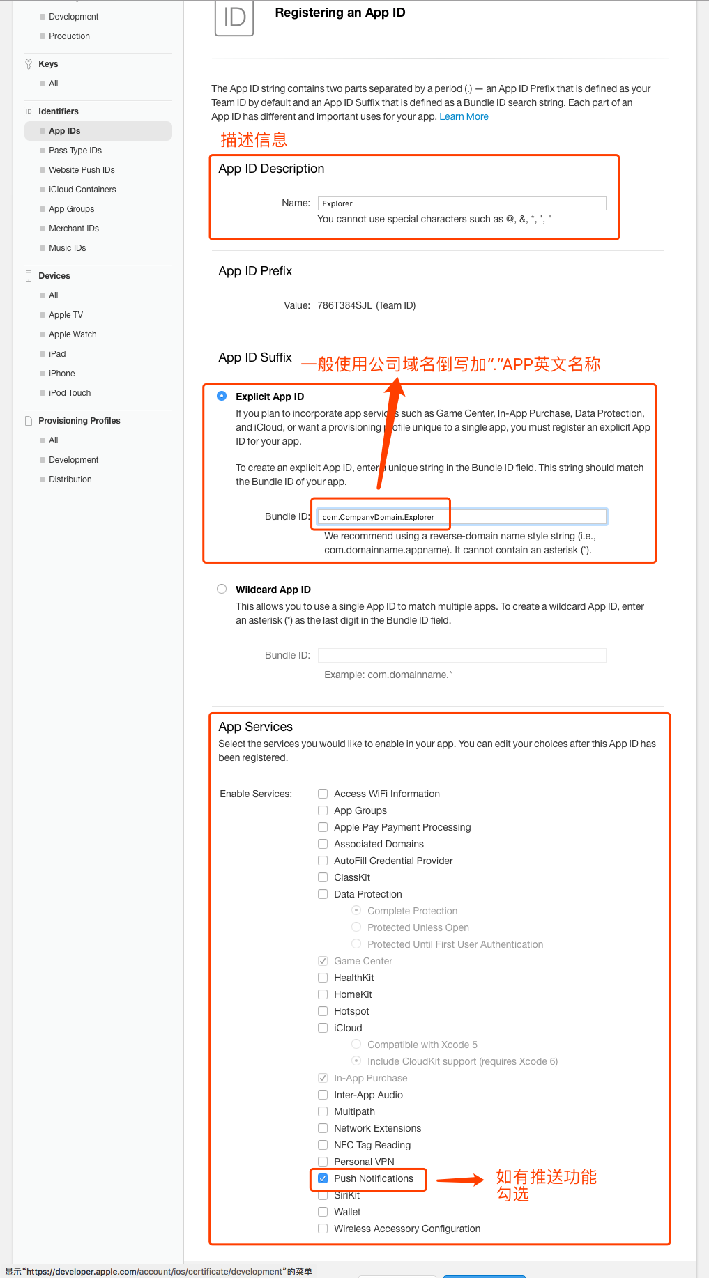 填写Explicit App ID 的格式为:com.companyDomain.appName