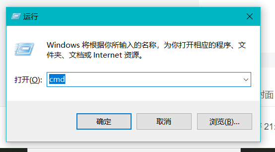 1. 键盘上同时按住“win”+“r”然后输入“cmd”,并点击确定。