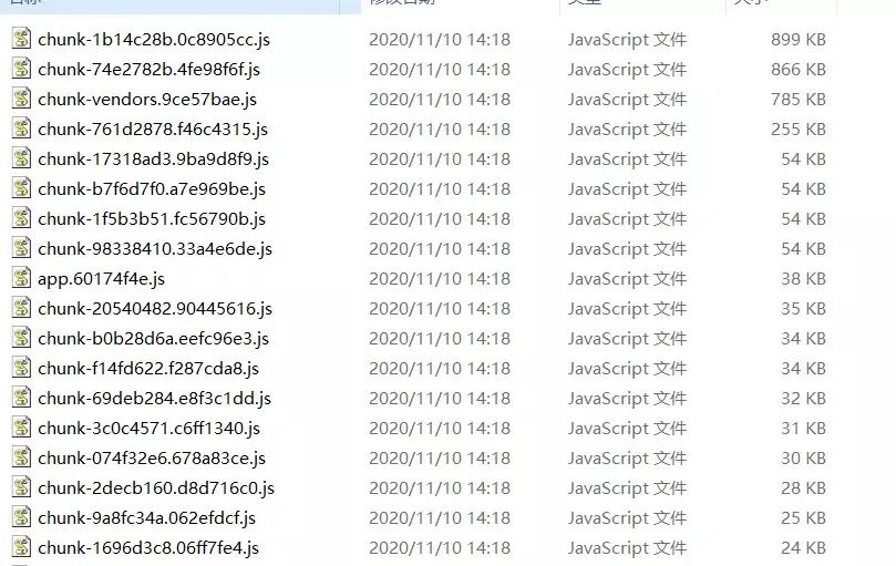 此时,我们对项目进行 npm run build, 打包出来的只有两个文件