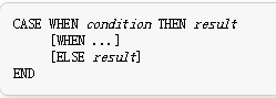 CASE表达式是一种通用的条件表达式,类似于其它编程语言中的 if/else 语句: