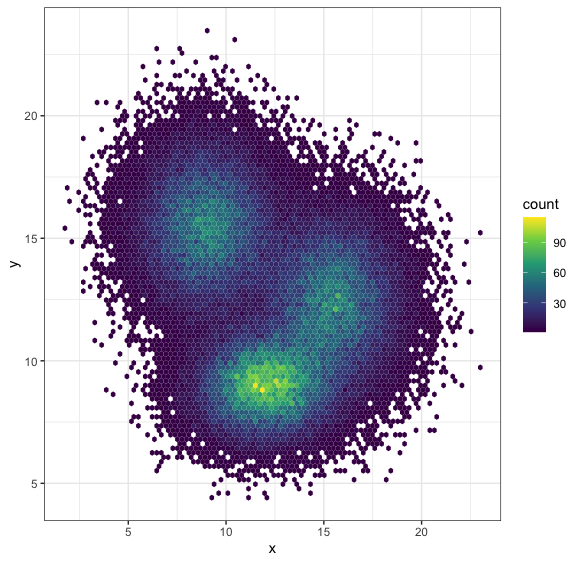 + geom_hex(bins = 90)