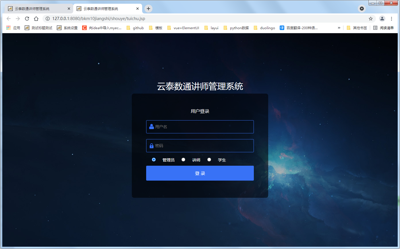云泰数通讲师管理系统开发工具(eclipse/idea/vscode等): 数据库(sqlite/mysql/sqlserver等): 功能模块(请用文字描述,至少200字):版权声明:本文为laojin1234原创文章,遵循CC 4.0 BY-SA版权协议,转载请附上原文出处链接和本声明。原文链接:https://blog.csdn.net/laojin1234/article/details/125200999