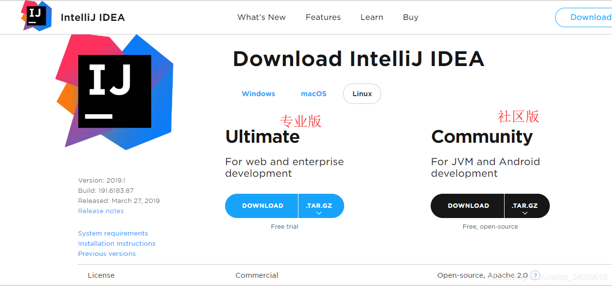 IDEA安装包下载地址:https://www.jetbrains.com/idea/download/#section=linux