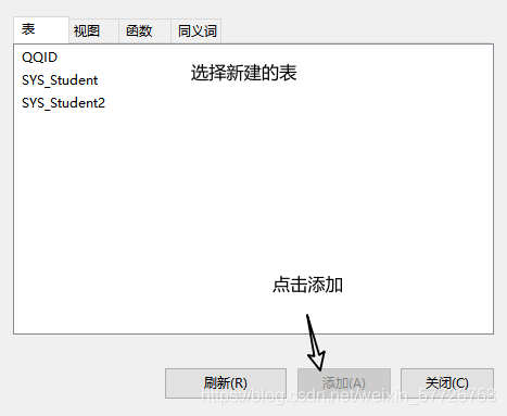选择新建的表,点击添加