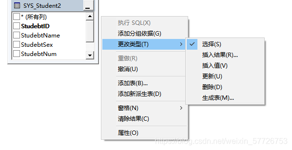 where StudebtID=1 (StudebtID=1)这个是查询条件 做点击执行就只查看指定的数据内容