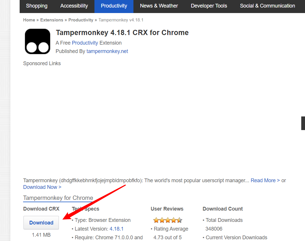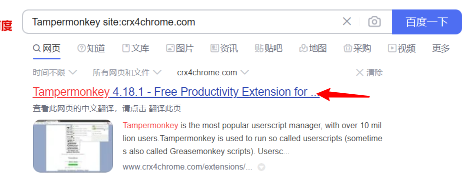 以下载“Tampermonkey”为例: