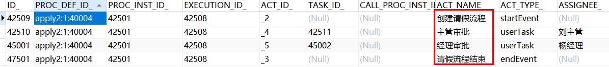 我们可以查看历史记录信息:ACT_HI