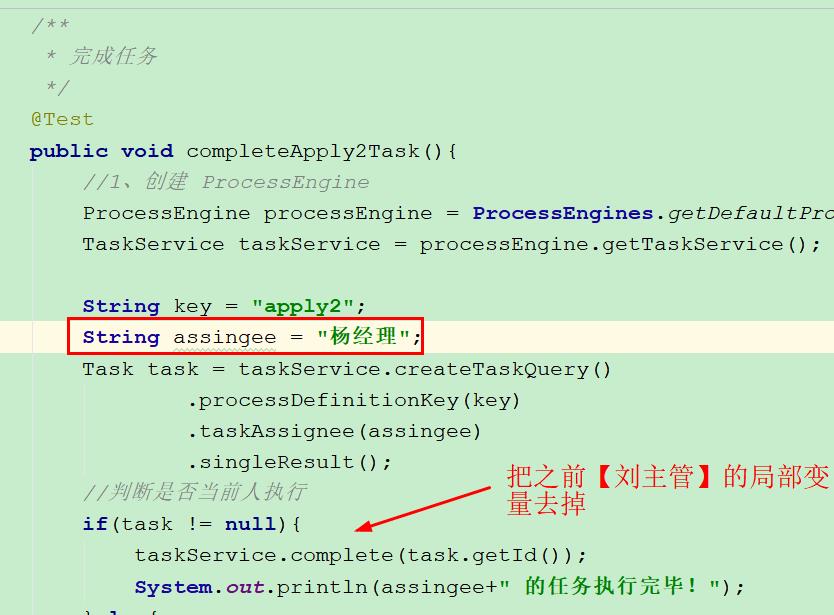 System.out.println(assingee+" 的任务执行完毕!");
