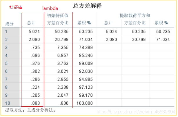 1、总方差解释表格: