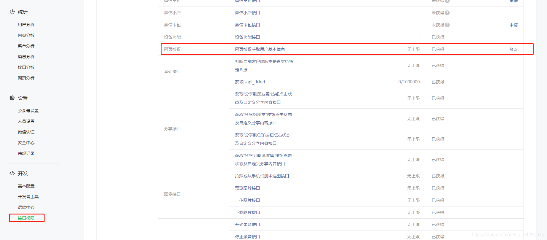 需要注意的是回调页面的域名须在微信公众号进行授权 :