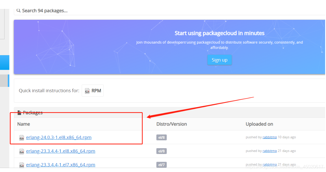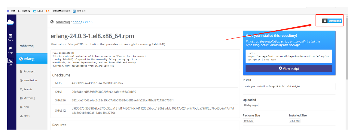 Erlang RPM包下载地址:https://packagecloud.io/rabbitmq/erlang