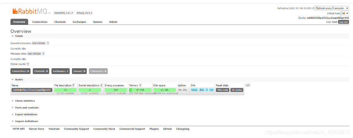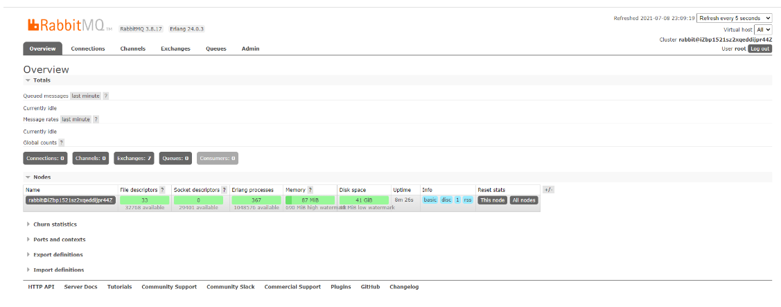 rabbitmqctl set_user_tags root administrator然后就可以用root用户访问了