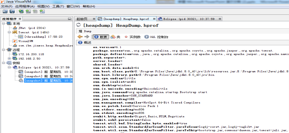 jmap -dump:format=b,file=c:\HeapDump.hprof 14842.4.6 jstat