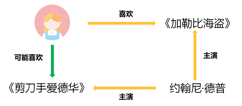 在了解了上面的三元组后,我们可以基于它构建下面这样的一个关系: