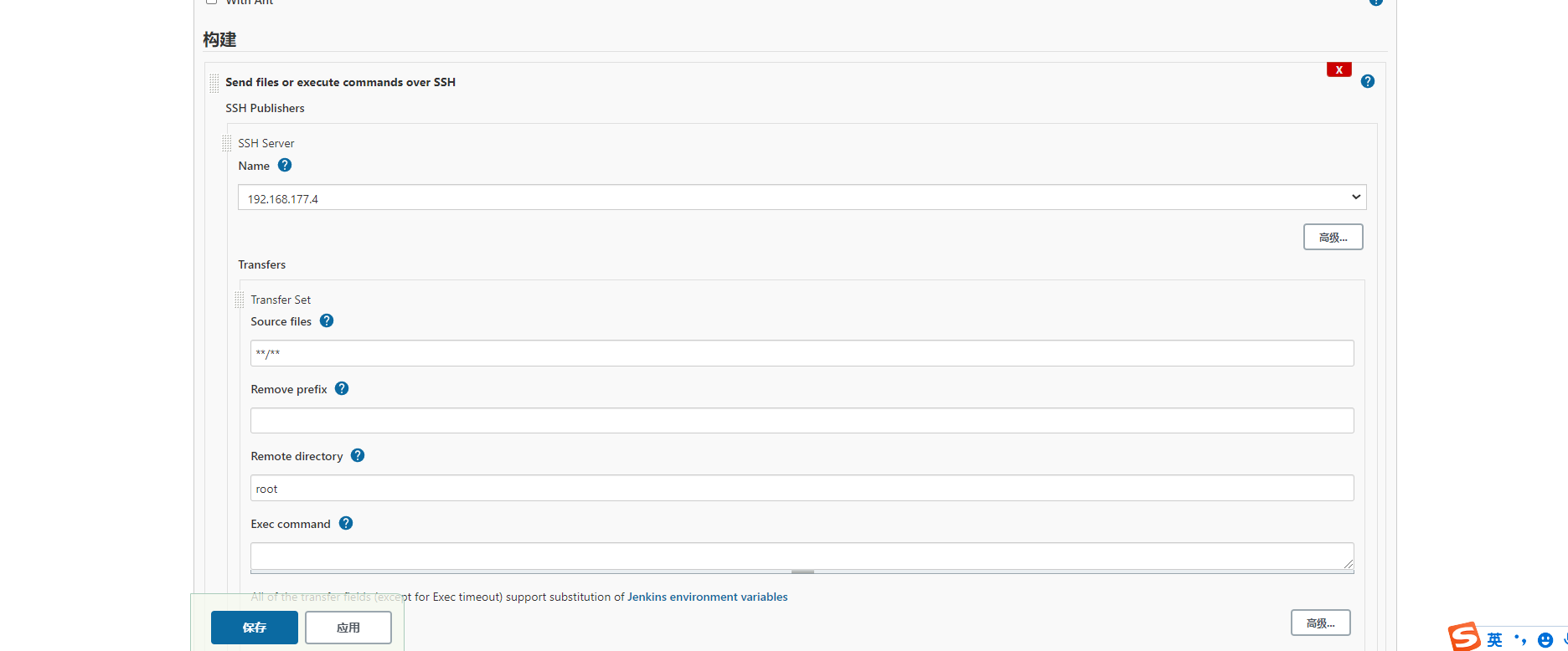 3.5构建步骤我随便填写的需要增加Publish Over SSH这个插件 并在系统中配置,完成之后点击保持。