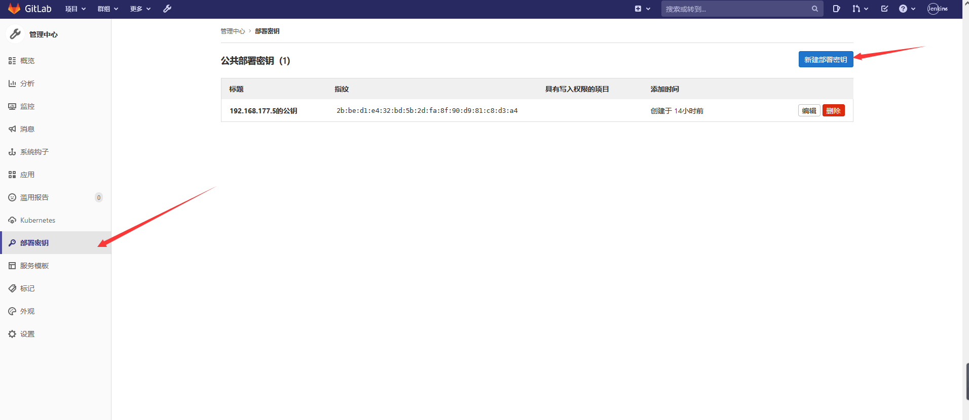 在gitlab上配置jenkins服务器的公匙(192.168.177.5的公匙)
