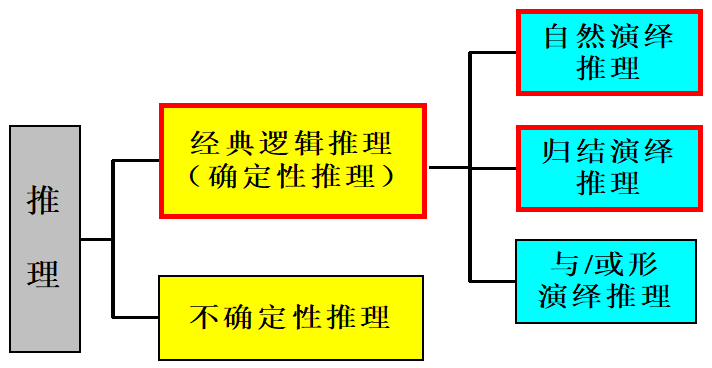 (2)不确定性推理:推理时所用的知识与证据不都是确定的,推出的结论也是不确定的。