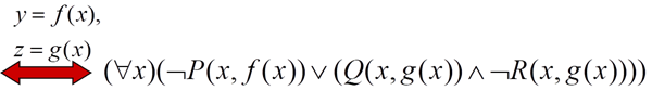 (2)把待求解的问题 Q 用谓词公式表示,并否定 Q,再与 ANSWER 构成析取式(﹁ Q ∨ ANSWER );(也就是QàANSWER)