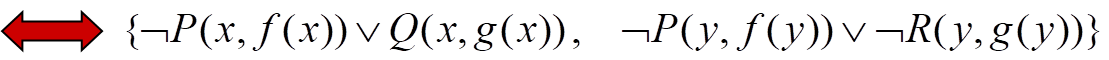 (3)把谓词公式集{F,﹁Q} 化为子句集S。