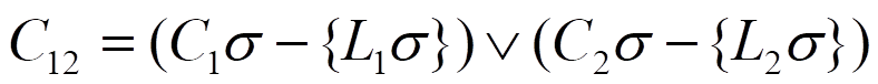 定义3.1(归结):设C1与C2是子句集中的任意两个子句,如果 C1中的文字L1与 C2中的文字L2互补,那么从C1和 C2中分别消去L1和L2,并将二个子句中余下的部分析取,构成一个新子句C12 。