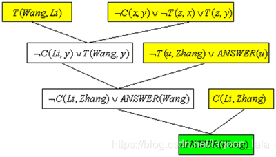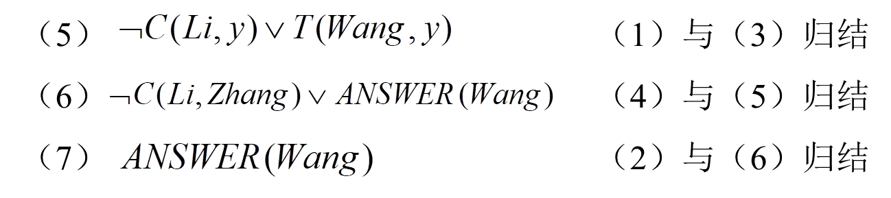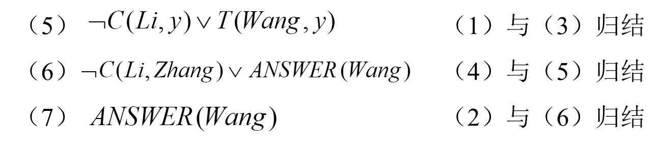 (5)若得到归结式 ANSWER ,则答案就在 ANSWER 中。