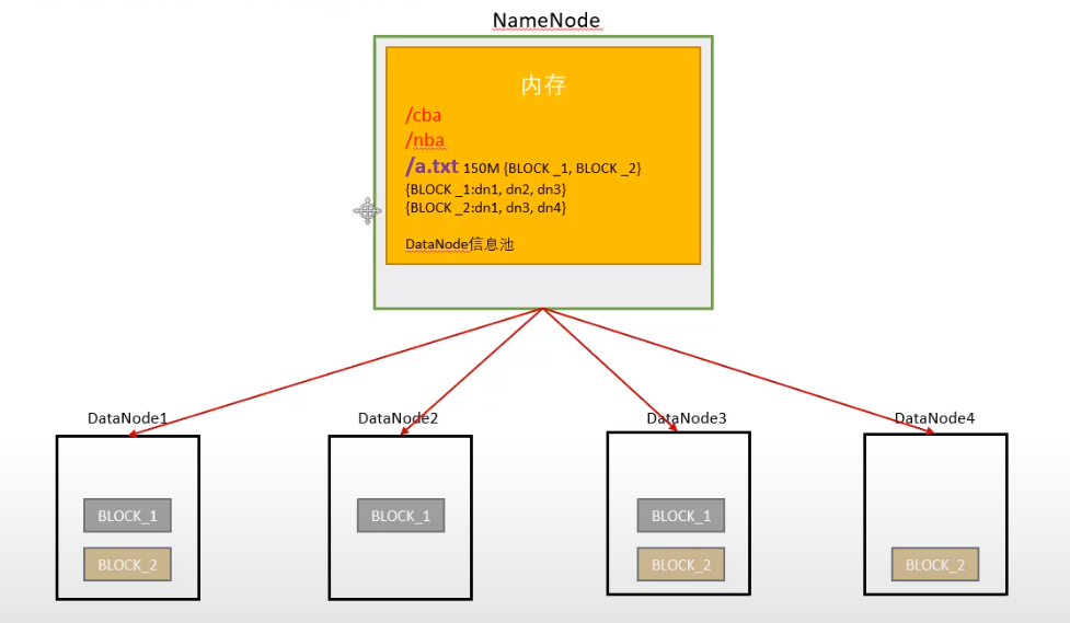 3.NameNode不存储实际文件中的数据,数据本身实际存储在DataNode中
