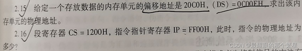 2.15:答案:物理地址=DS*10H+偏移地址;