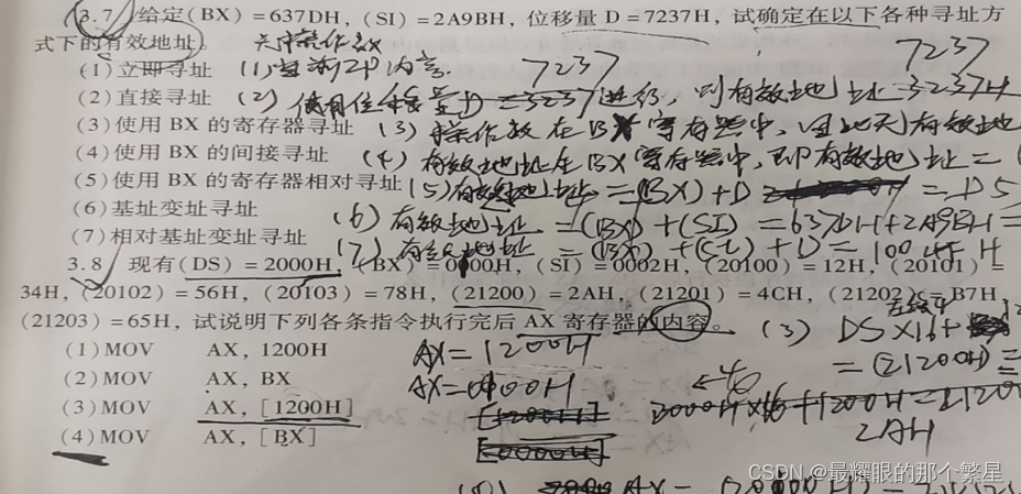 例子1:MOV AX,[BX+SI+DISP]也可以表示为MOV AX,DISP[BX][SI]或者MOV AX,DISP[BX+SI];