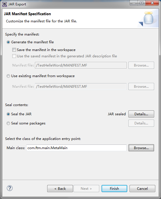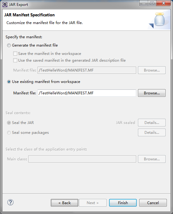 如果不使用自己的MANIFEST.MF,则选择默认系统生成的MANIFEST.MF文件,