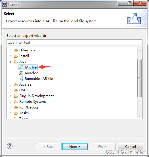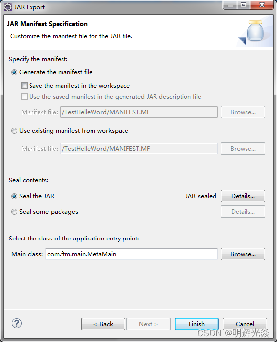 4、导出的java工程jar包a.jar,指定自己的MF文件,导出test下;