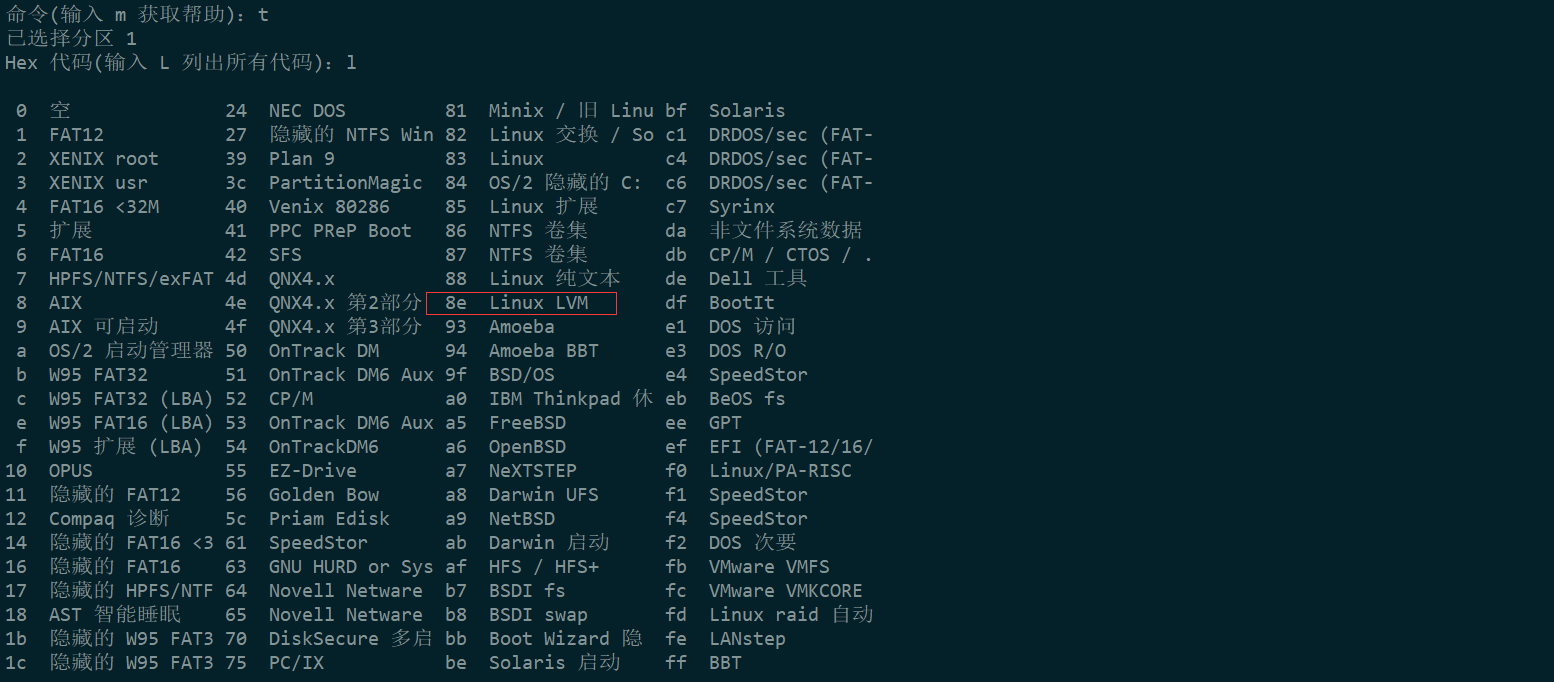 /dev/sdb1 2048 629145599 314571776 8e Linux LVM