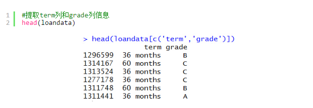 同样的方法,可以同时提取多个列的信息,下面的代码中提取了term和grade列的信息。