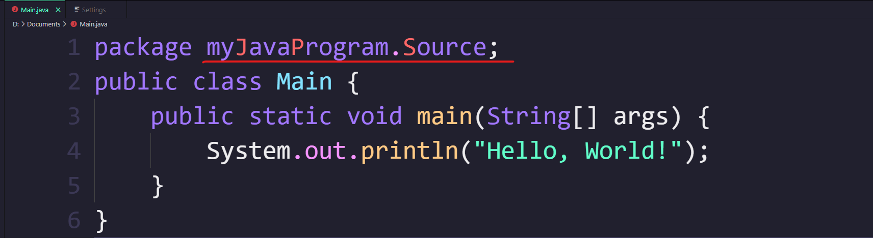 }在第一行中,我将包编写为.这表示我要创建一个名为 的文件夹。然后,我想在该名称下创建另一个文件夹。最后,我想在文件夹中创建我的Java代码的类文件。 package myJavaProgram.Source myJavaProgram Source Source