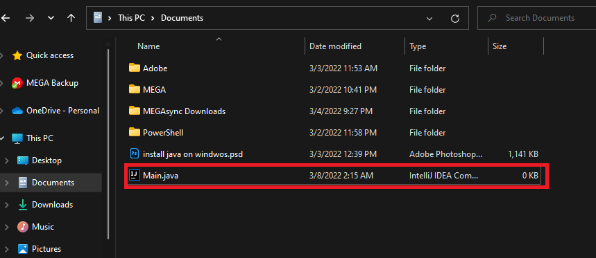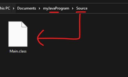 假设我在>文件夹中有源代码( )。我可以通过我的文件资源管理器简单地去那里。 Main.java This PC Documents