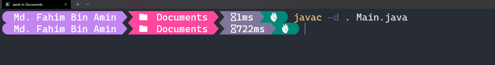 现在,如果我们要运行该文件,则需要稍微更改命令,因为我们需要在终端窗口中提供文件的目录。 .class .class