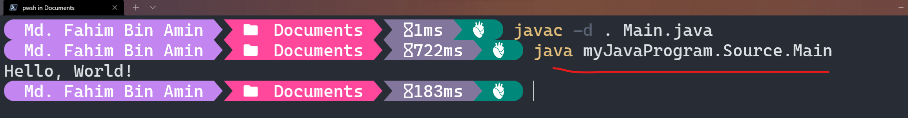 当我使用并且需要运行该文件时,我的命令将是.它将运行如下Java代码。 Main.java Main.class java myJavaProgram.Source.Main