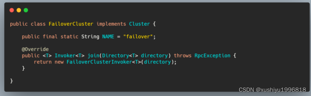 每个 Cluster 内部其实返回的都是 XXXClusterInvoker,我就举一下 FailoverCluster 这个例子。