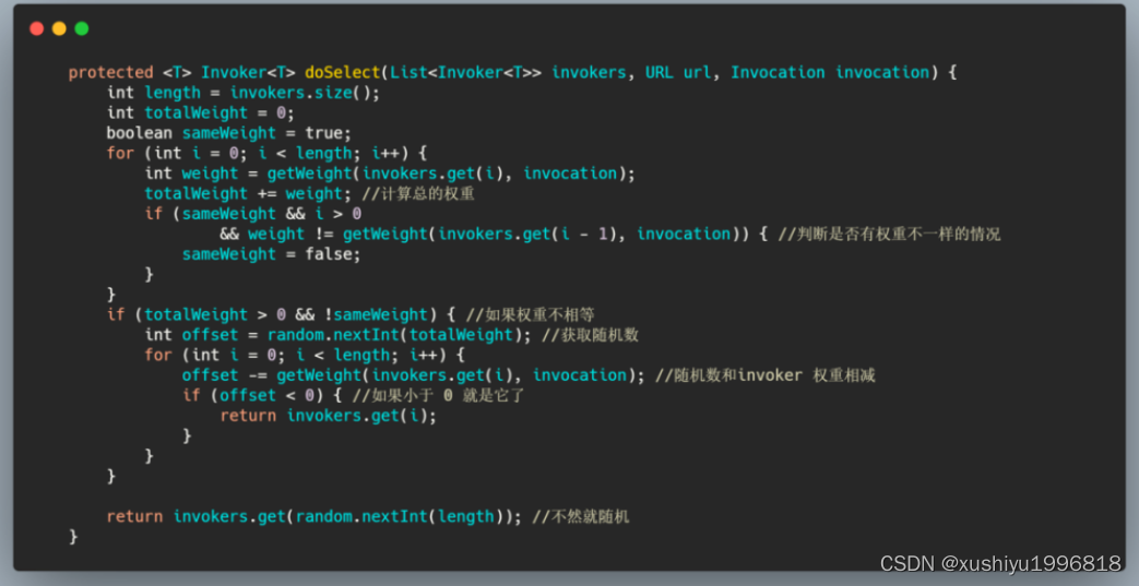 // 这里的处理方式就和 RandomLoadBalance 一致了