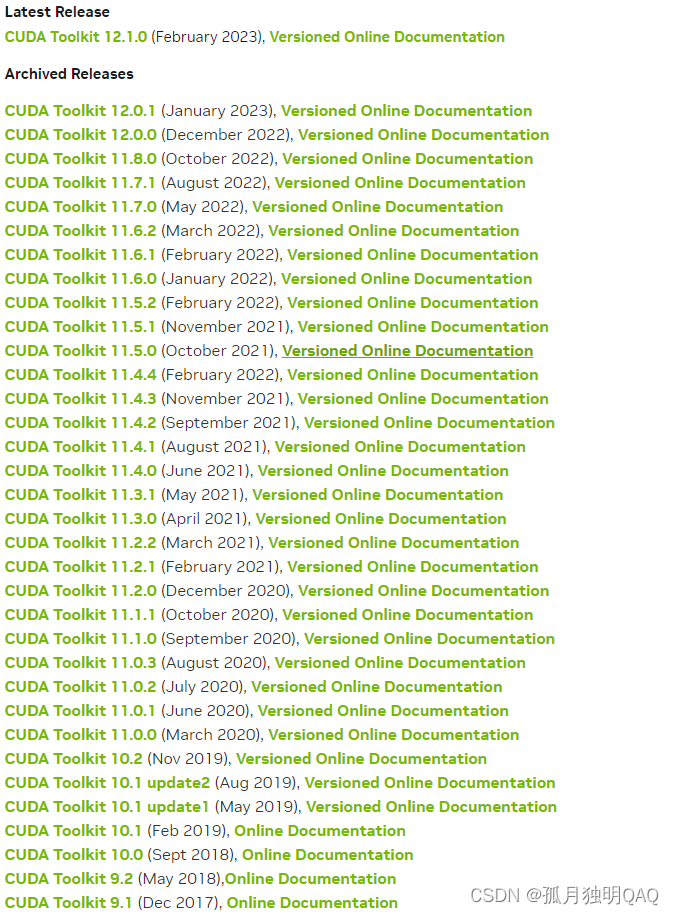 官网链接:https://developer.nvidia.com/cuda-toolkit-archive