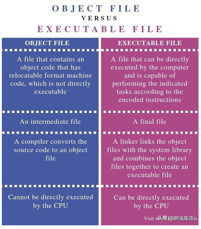 链接器将目标代码、库代码和系统标准启动代码结合在一起,形成的完整的可在操作系统下独立执行的程序,称为可执行文件。