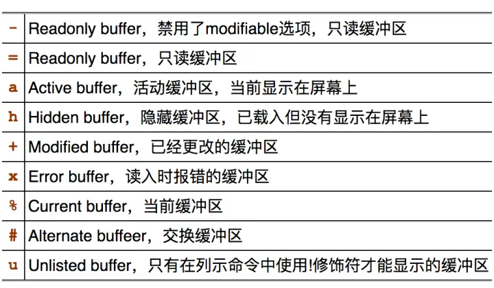 一.缓冲区类型及其标志(:ls或者:ls!命令查看)